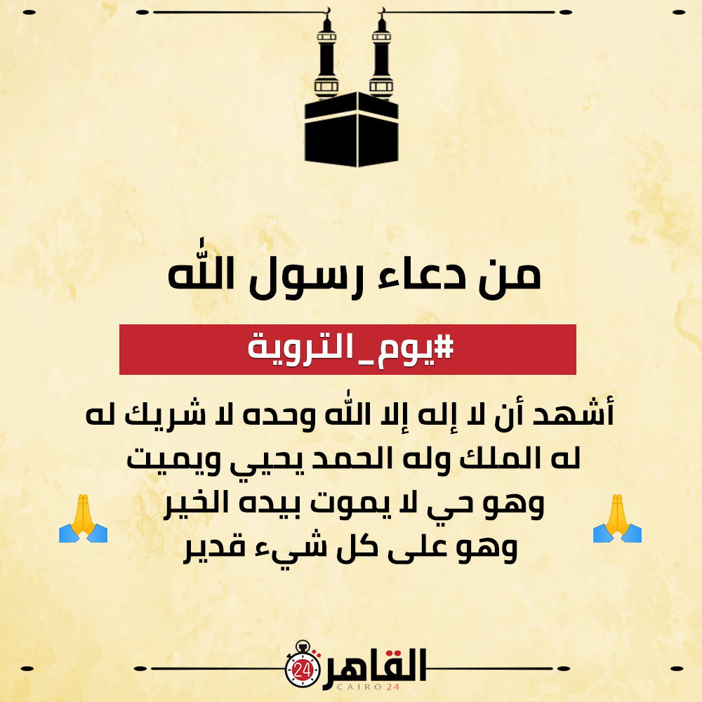 القاهرة 24 يوم التروية من أفضل الأيام للدعاء ومن أحب الأدعية في ذلك اليوم أشهد أن لا إله إلا الله وحده لا شريك له له الملك وله الحمد يحيي ويميت وهو حي