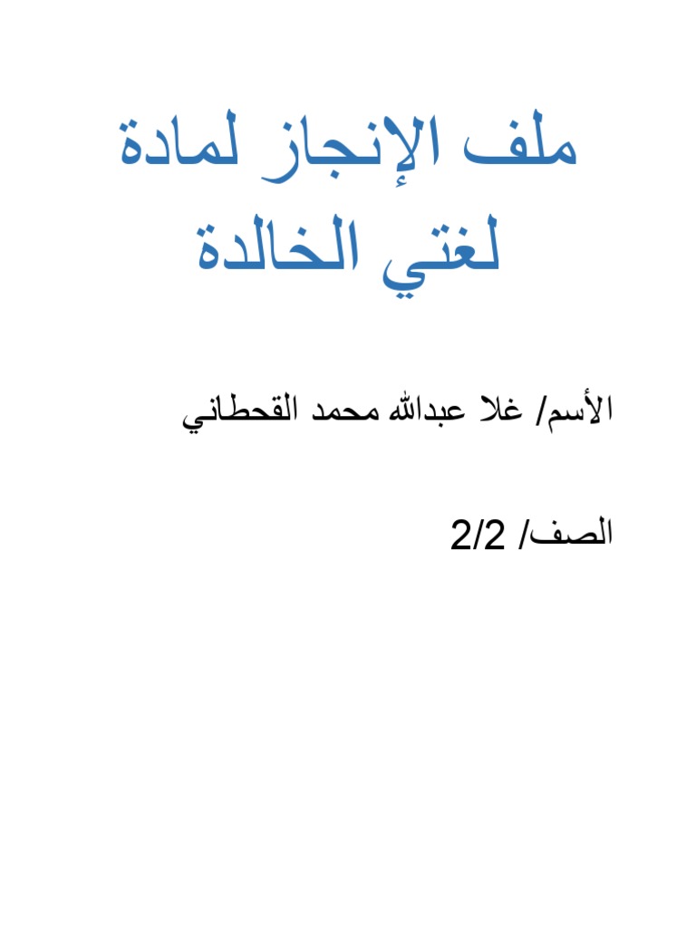 ملف انجاز الطالبة جاهز للطباعه لغتي الخالدة إجابة