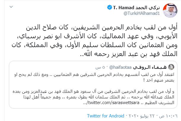 تاريخ لقب خادم الحرمين الشريفين د عبدالله الناصر حلمى