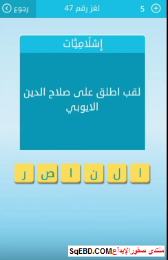 جواب سؤال لقب اطلق على صلاح الدين الايوبى من اللغز رقم 47 من لعبة رشفة للمجموعة السادسة صقور الإبدآع