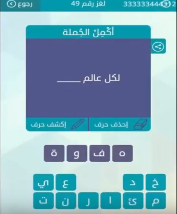 حل سؤال لكل عالم لغز رقم 49 من لعبة وصلة فى المجموعة السادسة صقور الإبدآع