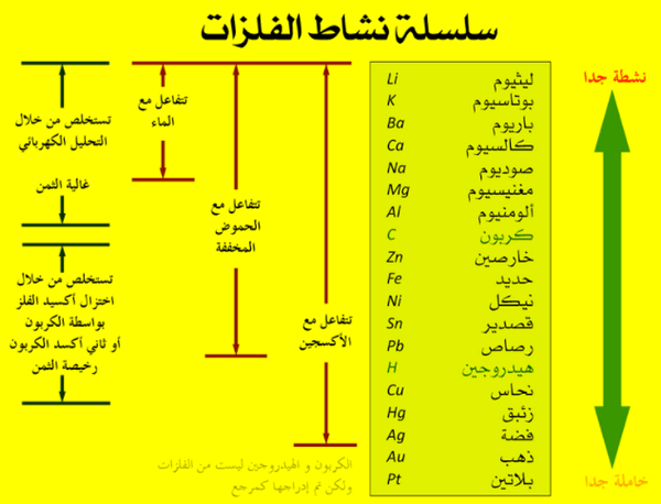 متسلسلة سلسلة النشاط الكيميائي. كما هو شائع في بعض تفاعلات الهالوجينات. سلسلة من العناصر رتبت طبقا لنشاطها الكيميائي الأكثر نشاطا في الأعلى و الأدنى نشاطا في الأسفل فمثلا الصوديوم أكثر نشاطا من المغنيسيوم و الألومنيوم و المغنيسيوم أكثر نشاطا من الخارصين و. Motasalselat أسهل طريقة لحفظ عناصر متسلسلة النشاط الكبمبائي طريقة سهلة جدا لحفظ عناصر متسلسلة النشاط الكيميائي. سلسلة أو متسلسلة النشاط الكيميائي هو ترتيب عناصر الفلزات ترتيب تنازلي حسب نشاط هذه العناصر الكيميائي حيث تبدأ السلسلة من أسفل بعنصري الفضة والنحاس فهم يعدوا ذوي.