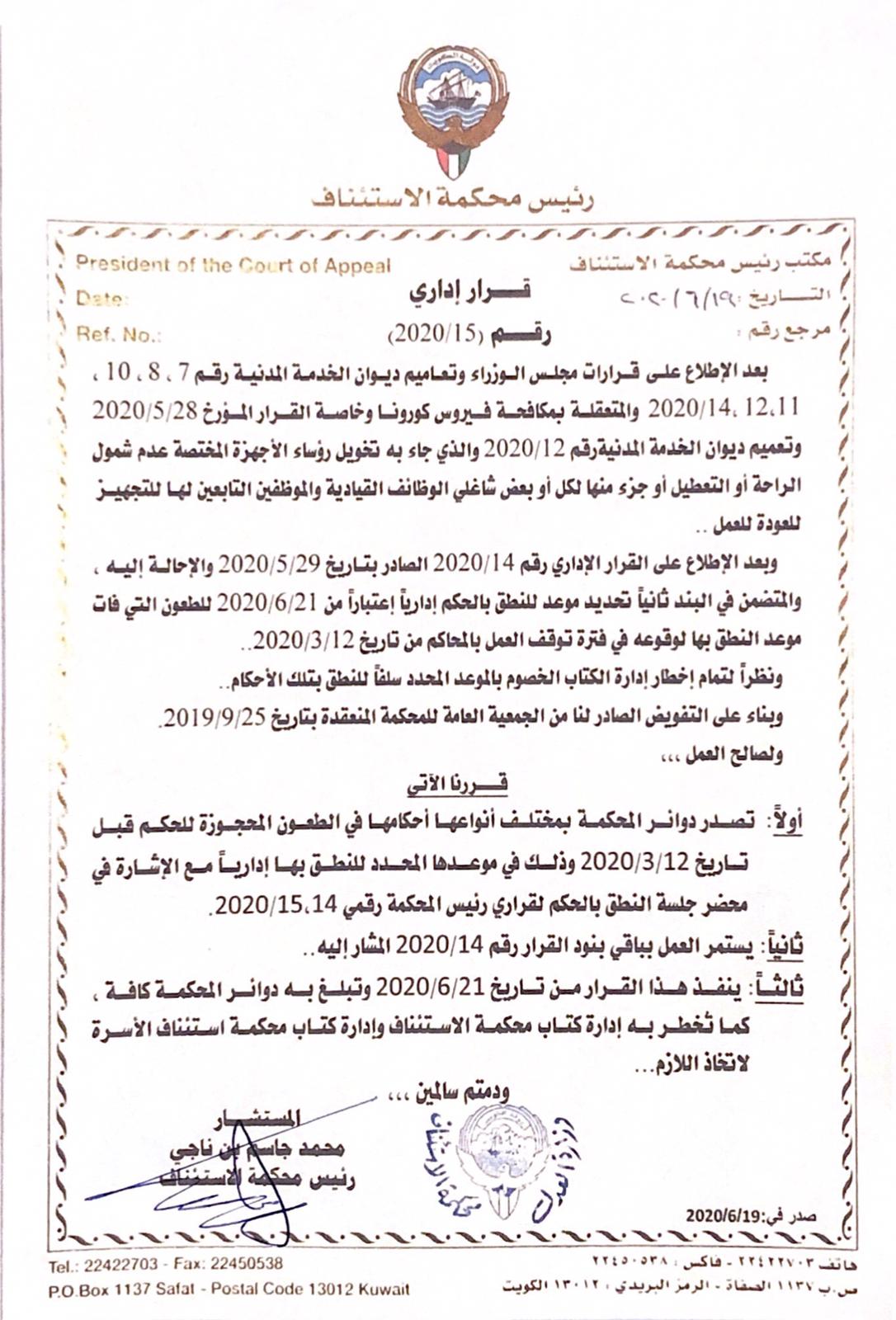 جمعية المحامين الكويتية V Twitter قرار رئيس محكمة الإستئناف المستشار محمد بن ناجي اليوم بشأن صدور الأحكام من دوائر المحكمة بمختلف أنواعها للطعون المحجوزة للحكم قبل تاريخ 12 3 2020 جمعية المحامين الكويتية Https T Co Ofipyuxdsz