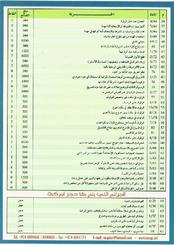 خدمة مخالـــــفات رخص المركــــــــــــبات. كيف استعلم عن المخالفات المرورية في قطر من موقع وزارة الداخلية عند تعلمك قيادة السيارات هذا ليس نهاية المطاف بل يجب عليك أولا و قبل كل شيء تعلم قوانين و إشارات المرور و خصوصا في دولة قطر مخالفات المرور في قطر. قررت وزارة الداخلية القطرية التحقيق في المخالفات المرورية لجميع أنواع السيارات والمنشآت السلطات هي.