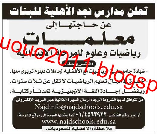 مدارس نجد الأهلية للبنات. ابتدائي هاتف 8949985 فاكس 8977488 متوسط ثانوي هاتف 8949180 8951800. مدارس رياض نجد شركة تربوية تعليمية رائدة تأسست 1995م حاصلة على شهادة الآيزو منذ 2001م لصفوف رياض الأطفال إلى الثانوية العامة عام ودبلوم معتمدة كمركز تدريب لاختبارات السات وحاصلة على عدة اعتمادات دولية advanced و aiaa. للسعوديات فقط تعلن مدارس نجد الأهلية للبنات عن حاجتها إلى. مدارس التربية الأهلية linkedin de 294 takipçi مدارس التربية الأهلية الخبر الدمام الشرقية dammam khobar تأسست مدارسنا عام 1386 هـ بهدف إعداد أجيال مرتبطة بربها وبدينها مستفيدة من كل ما يمكن أن يتيحه العصر بين أيدينا من مبتكرات.