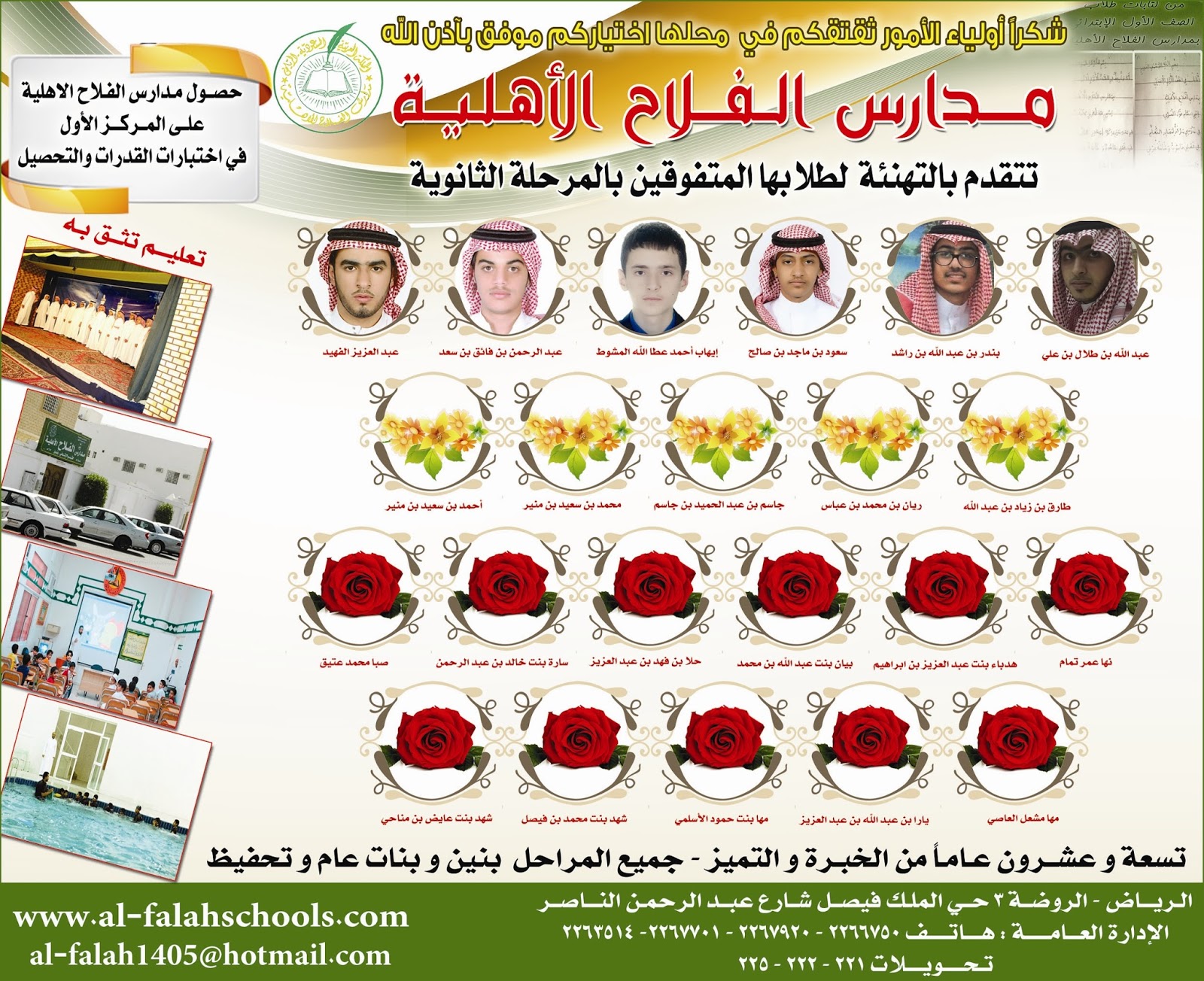 مدارس الفلاح الأهلية مدارس الفلاح تهنئ المتفوقين