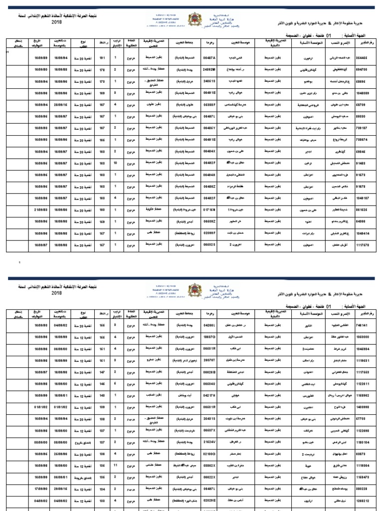 لائحة المنتقلين في الحركة الانتقالية 2018 ابتدائي
