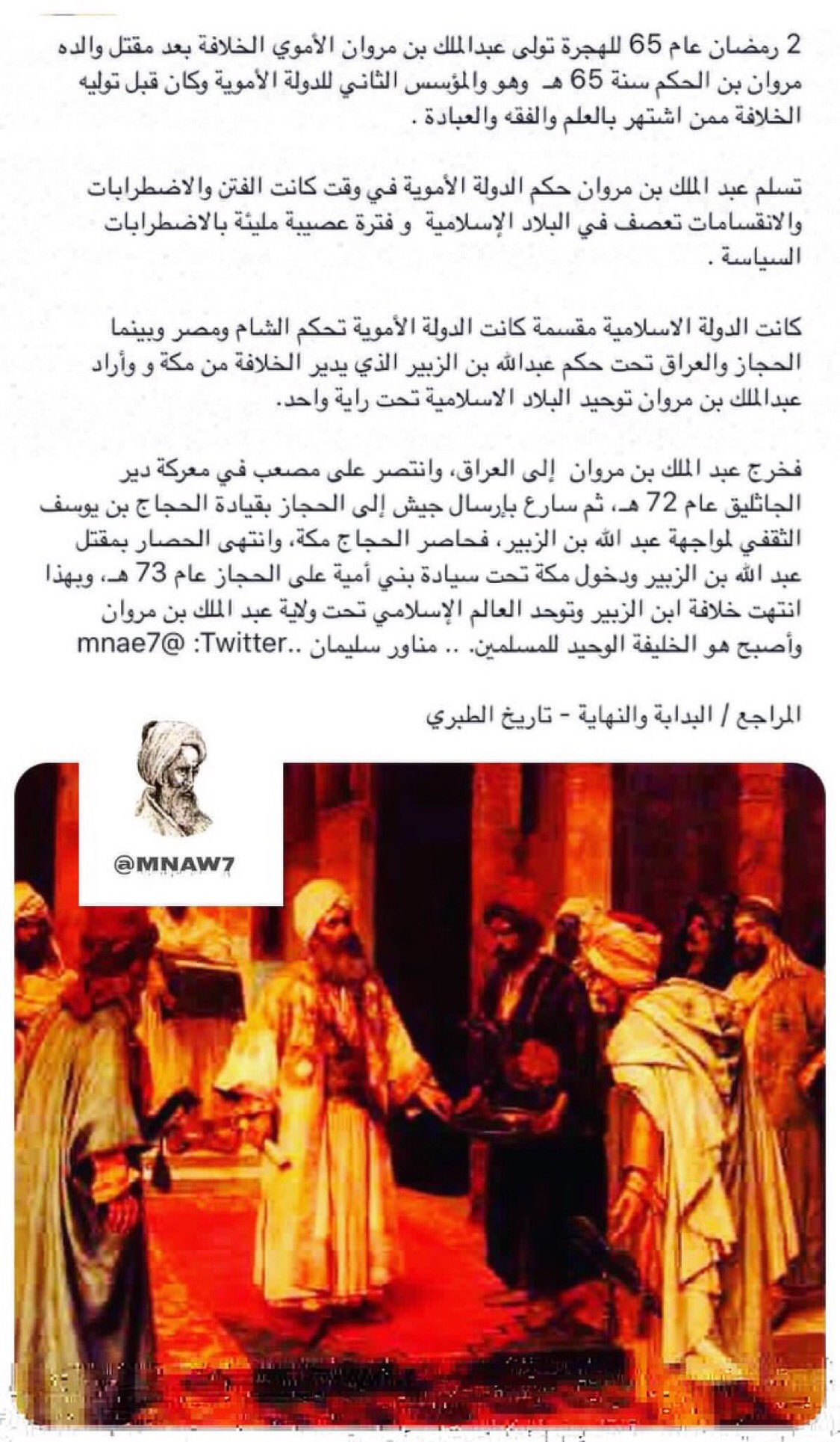 مناور سليمان On Twitter ٢رمضان لعام 65 هـ تولى الخليفة الأموي عبد الملك بن مروان الخلافة بعد مقتل والده مروان بن الحكم سنة 65 هـ