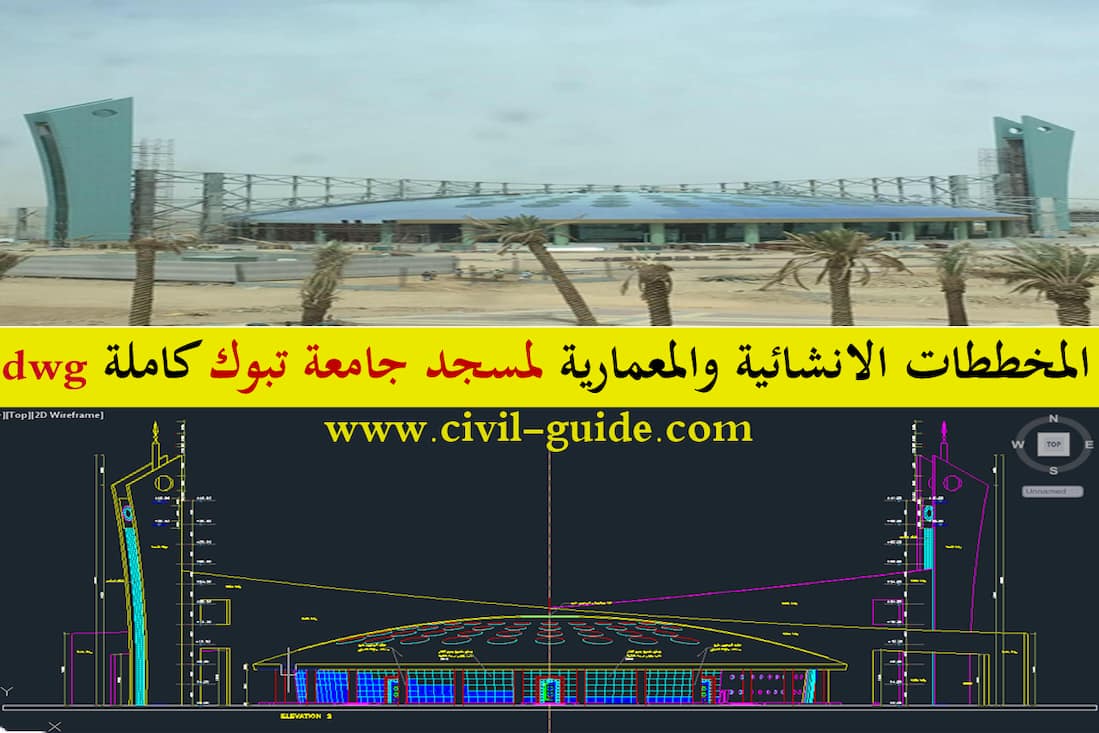 المخططات الانشائية والمعمارية لمسجد جامعة تبوك Dwg بالمملكة العربية السعودية