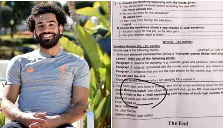 قبل اللغة الإنجليزية 4 امتحانات ظهر فيها اسم محمد صلاح مصر الوطن